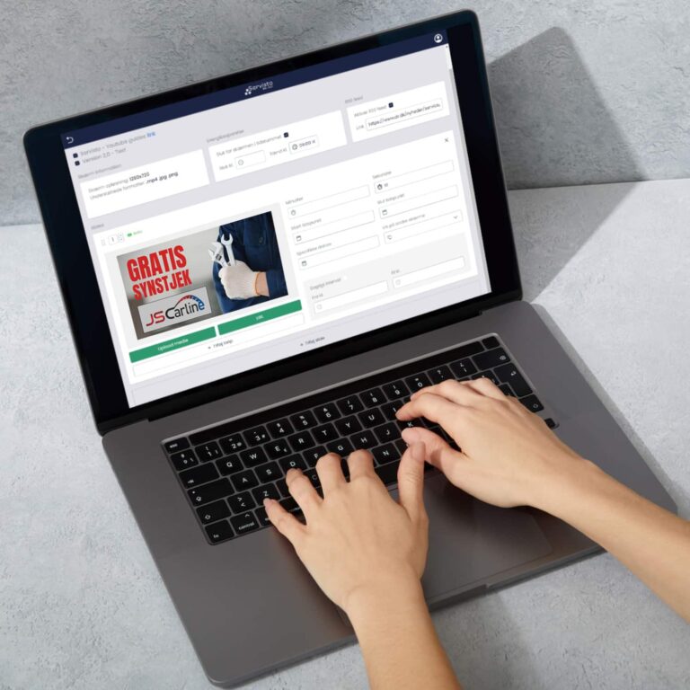 Med Servisto Manager kan du nemt og hurtigt opdatere indholdet på dine skærme uanset hvilken skærm du har og hvor du befinder dig.