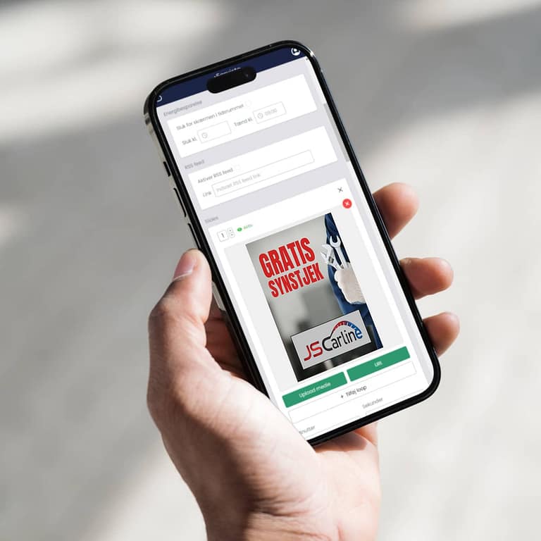 Du kan oprette, planlægge og opdatere grafik, tekst og videoer på dine infoskærme.